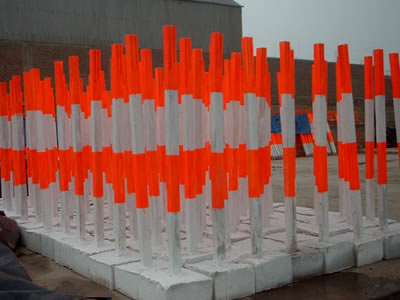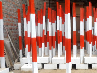Usos: Parante para demarcar áreas de trabajo u obras, también aplica para señalizar zonas de peligro. Compuesto de madera y concreto. Conocido como Cachaco, poste de madera o portacinta.
